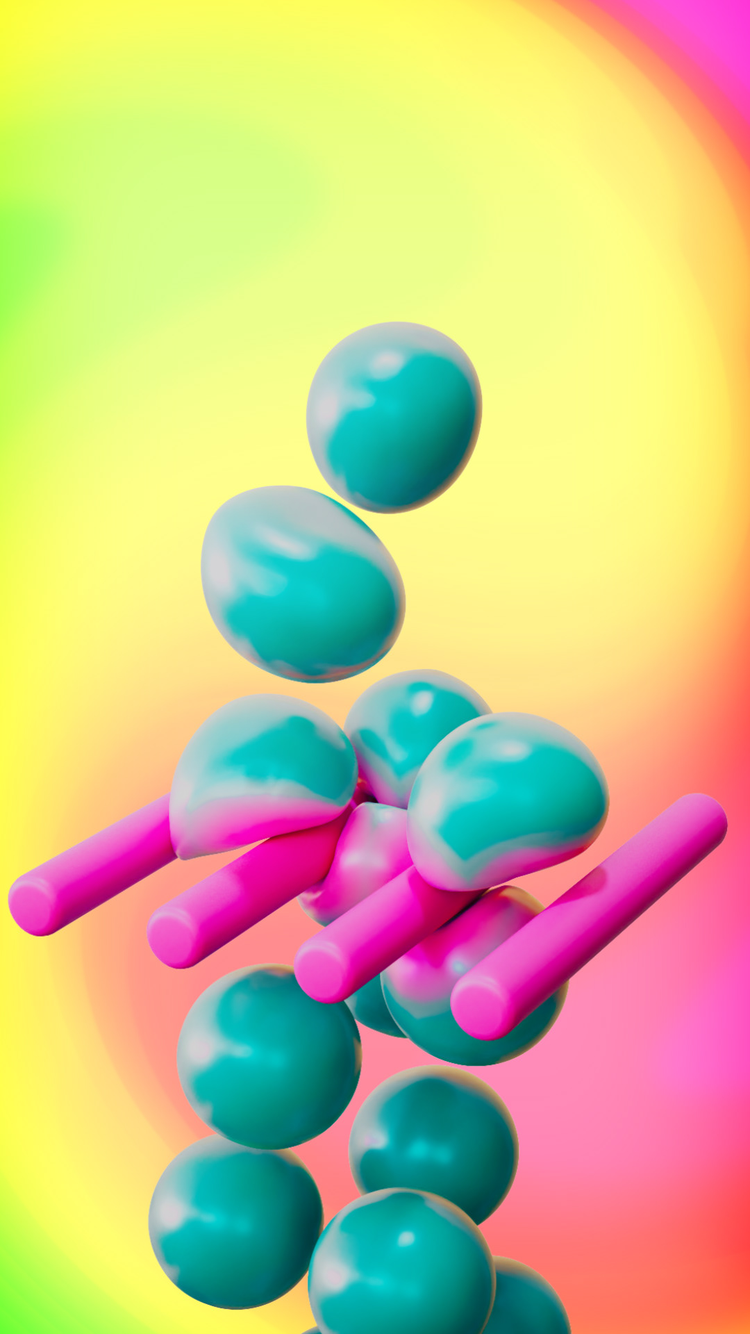 Playful abstract motion design created for Instagram. Features bold color contrast, glossy materials, and dynamic animation.
